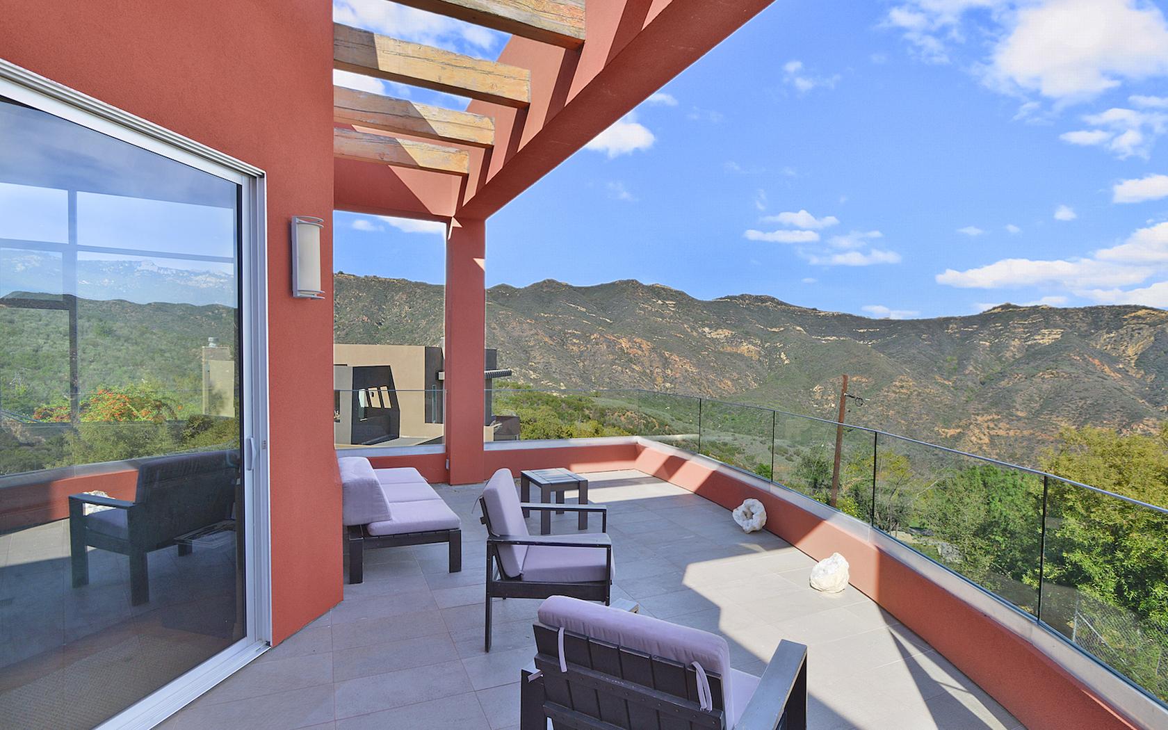From the MLS “Built from the ground up in 2010, this 3 bed 2 bath contemporary home features high ceilings, natural light, & walls of glass framing amazing panoramic views. There is a gourmet kitchen w/ stainless appliances & a large center island, both w/ Ceaserstone countertops. The living room has a gas fireplace with doors that lead to a large balcony where you can see the Santa Monica mountains & some ocean views. The master bedroom has its own balcony, a walk-in closet, and a dual sink master bath w. a deep soaking tub and heated towel racks. The home even has an elevator running from the 2 car garage to the main level. The floors are engineered bamboo and the baths feature designer tiles and fixtures. Outside you will find a drought-tolerant landscape, 2 patios, and a custom-built water fountain. The home shows incredible attention to detail and fine craftsmanship. The septic system has just been modernized and upgraded to LA County codes. The garage has a large and separate storage room.”